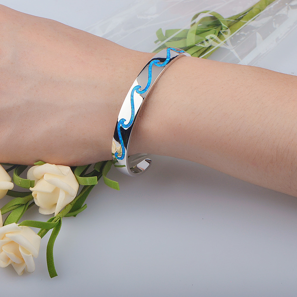 Hongdi European and American Opal Hawaiian Style Surf Wave Pattern Stainless Steel Bracelet Wholesale with Opal Inlay