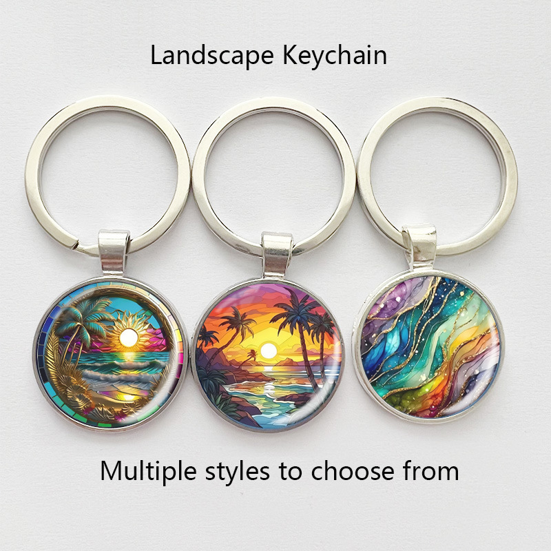 Sunset Scenery Hawaii Water Tower Surfboard Mountain River Time Gem Keychain Car Keychain