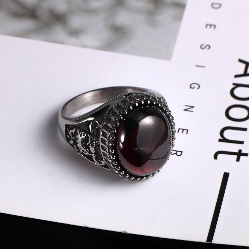 European and American Plain Face Gem Titanium Steel Ring Classical Flower Inlaid Finger Ring Vintage Old Finger Men's Jewelry