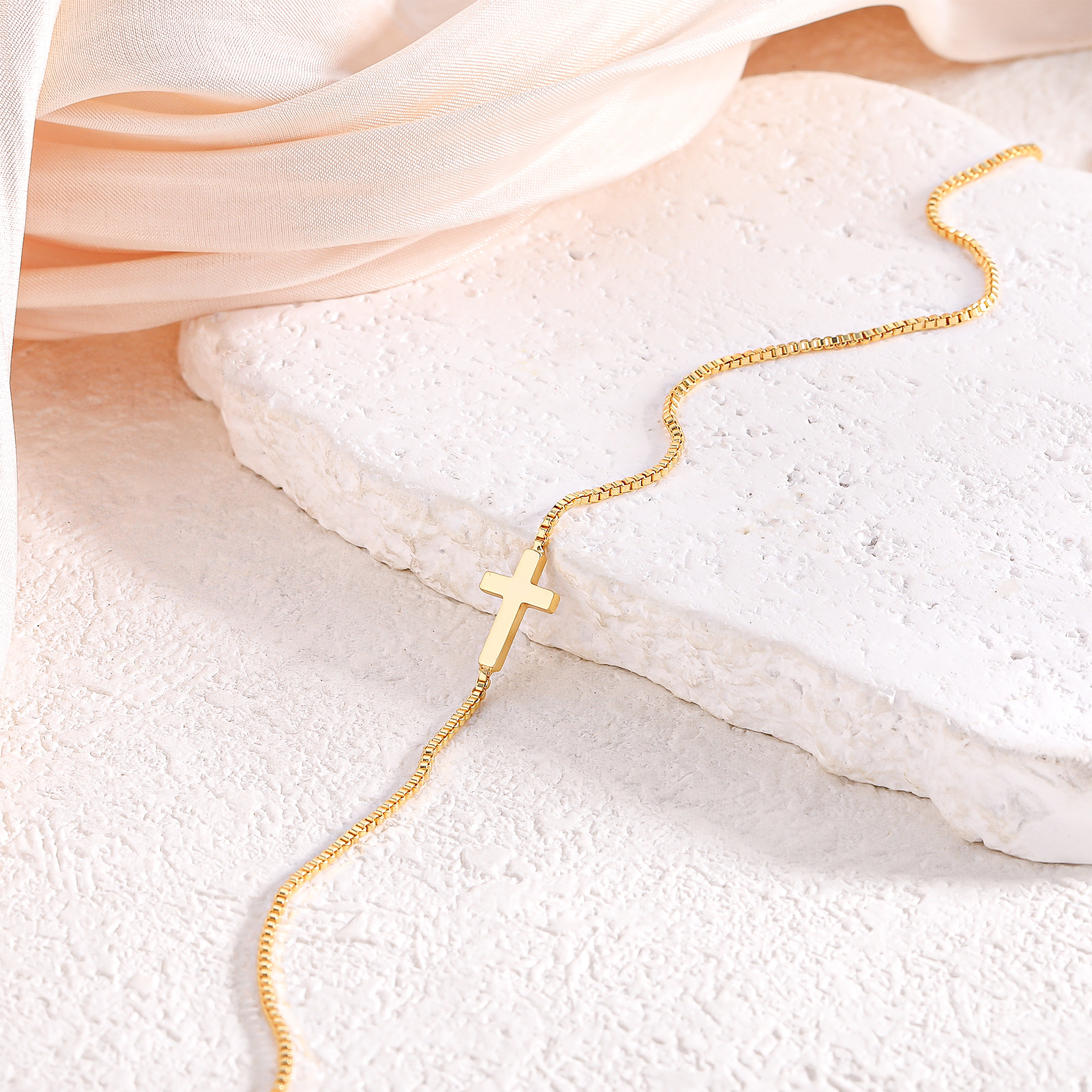 European and American Fashion Ins-Style Copper-Plated 14K Real Gold Cross Necklace, Simple and High-End Women's Clavicle Chain Wholesale