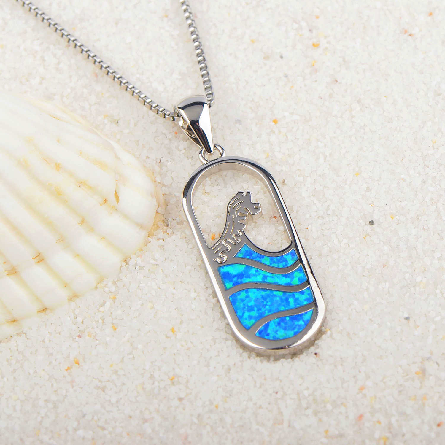 Amazon ins Hawaiian Blue Opal Wave Bottle Necklace Wave Pendant Woolen Chain Opal Necklace