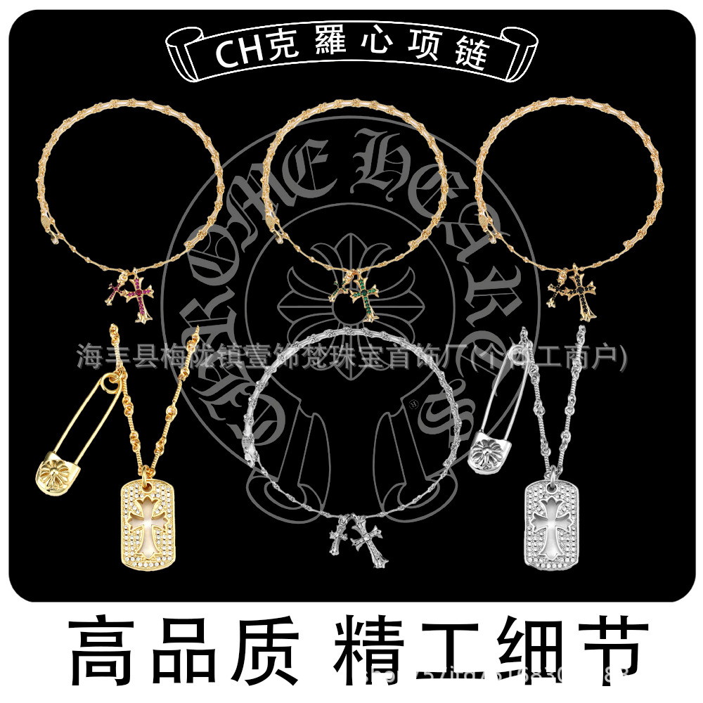 European and American Crow Heart Necklace for Men and Women Couples Diamond-Encrusted Double Cross Pendant Versatile Clavicle Chain Wholesale Live Broadcast Light Luxury