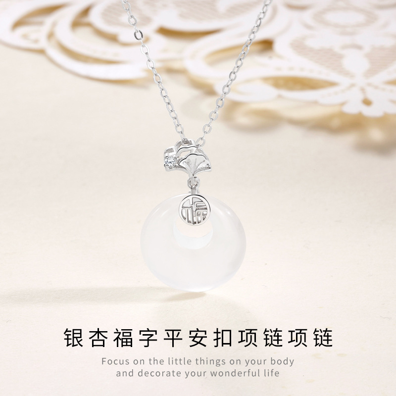Sansheng Apricot Ping An Buckle White Chalcedony Necklace Women S925 Sterling Silver Niche Entry Luxury High-end Retro Fu Brand Necklace Women