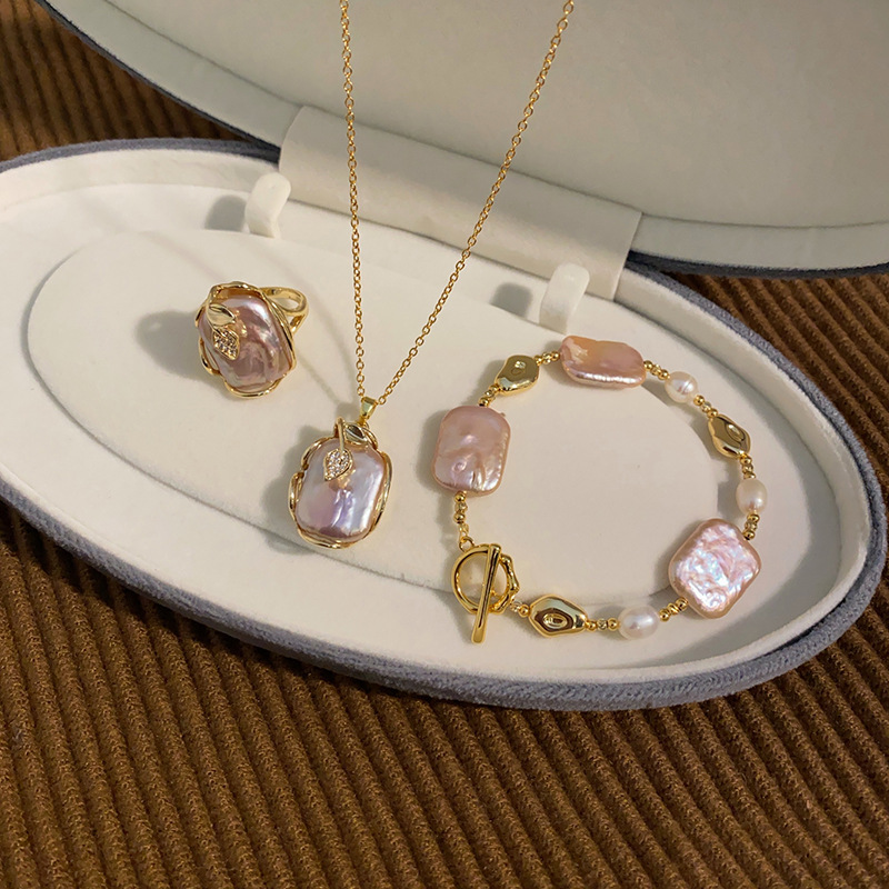 Natural Purple Baroque Freshwater Pearl Pendant Necklace Women's Light Luxury Niche Fashion Elegant Design Sense sweater chain
