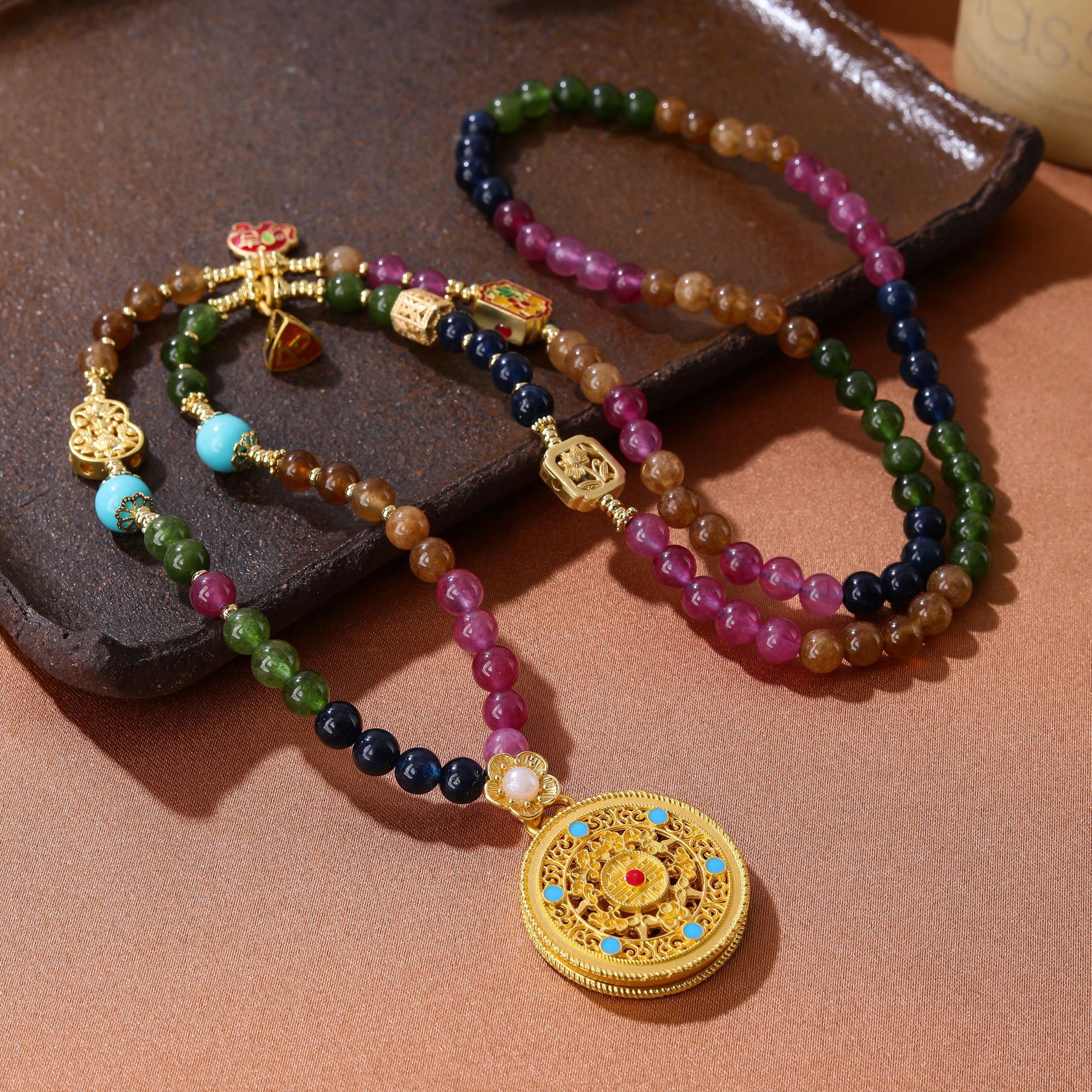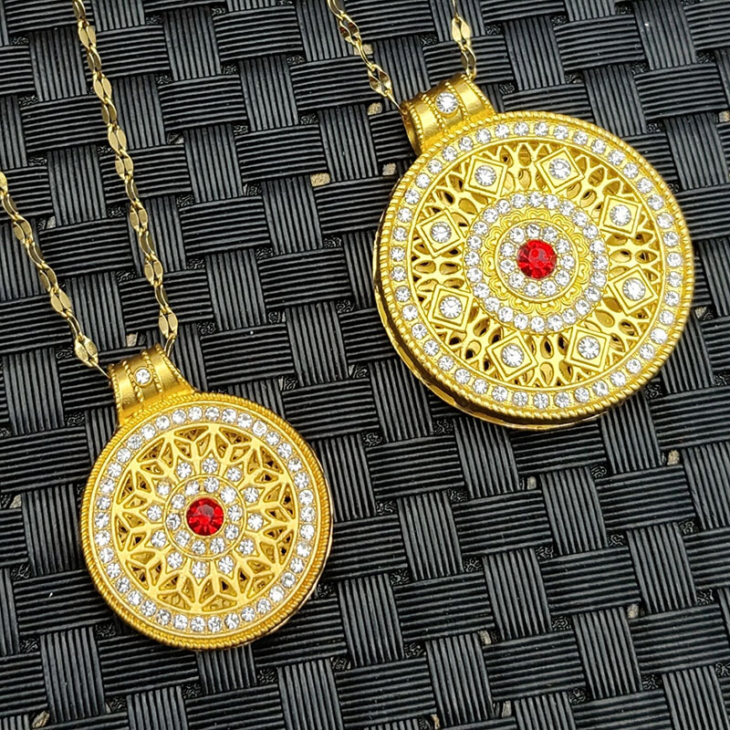 Ancient sand gold eight treasures compass pendant diamond-embedded women's alloy material national fashion electroplated filigree necklace live gift
