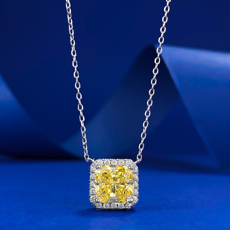 Mu Jing jewelry Europe and the United States new S925 silver inlaid high carbon drill 7*7 ice-cut necklace pendant suit women