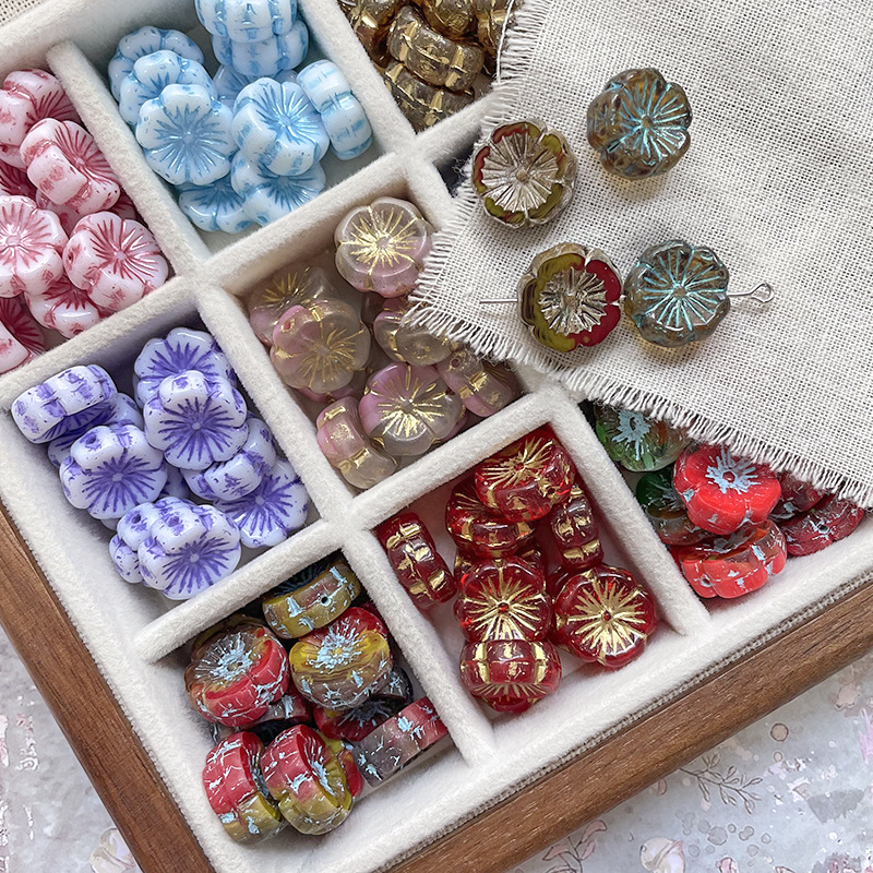 [Hawaiian Flower] Imported Czech Glazed Plum Blossom Five-Petal Flower Gold-Painted DIY Handmade Beaded Bracelet Jewelry
