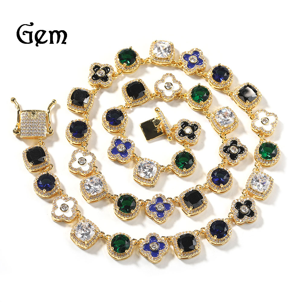 Foreign Trade New Hip-Hop Necklace Summer Personalized Colorful Diamond Geometric Flower Men's and Women's Elegant Accessible Luxury Necklace Accessories