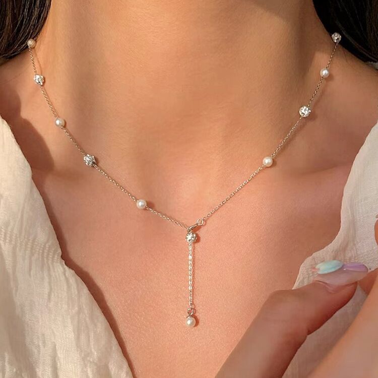 French Entry Luxury Zircon Pearl Necklace Women's High-end Retro Niche Water Drop Pendant Collarbone Chain Explosive Accessories