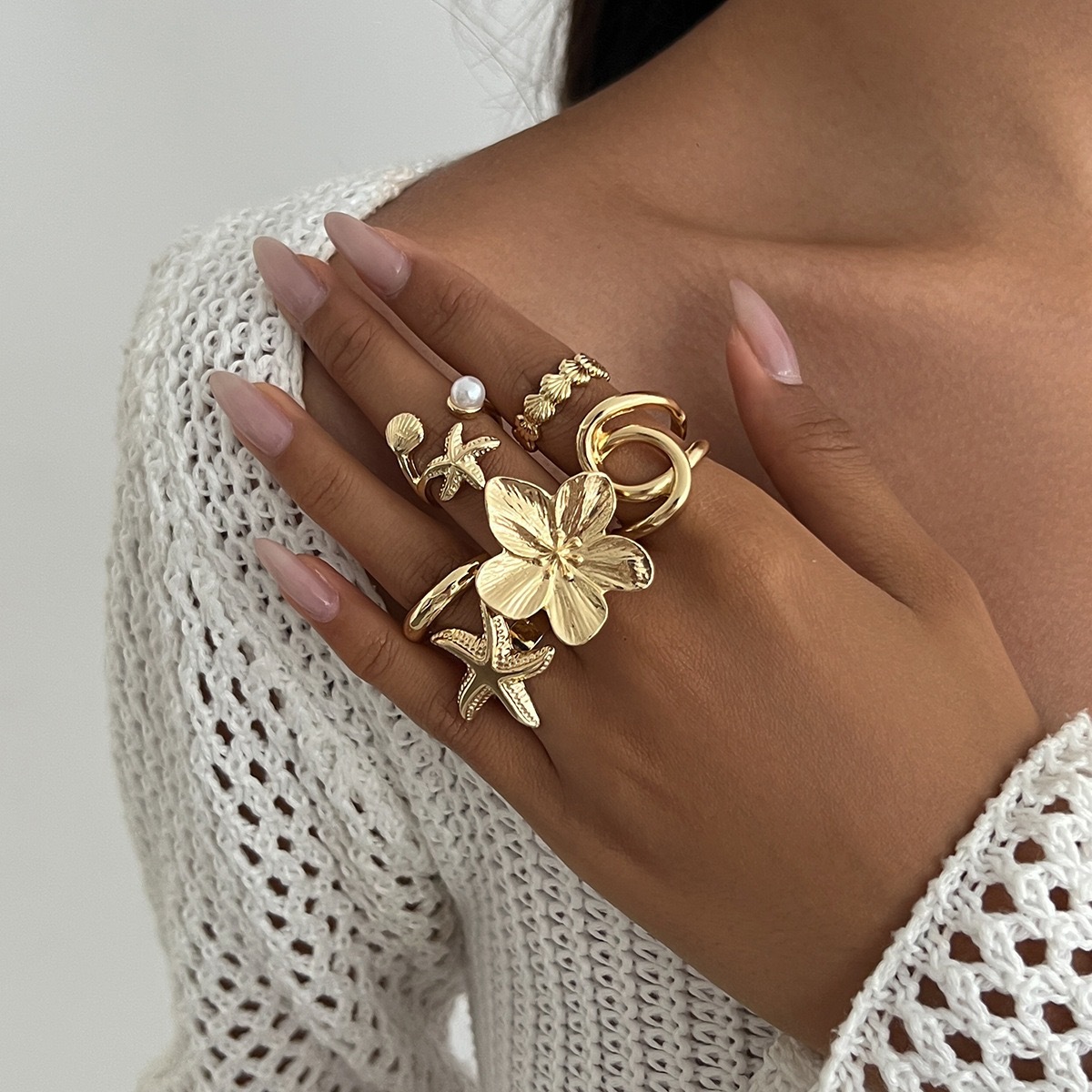 Cross-Border Hot-Selling Magnetic Bracelet Ring Combination Magnet Bracelet Flower Ancient Red Copper Brushed Retro Style Men's and Women's Jewelry