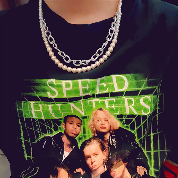 Ins European and American Minimalist Style Fashion Pearl Chain Double-Layer Titanium Steel Necklace Unisex Punk Style Niche Accessories