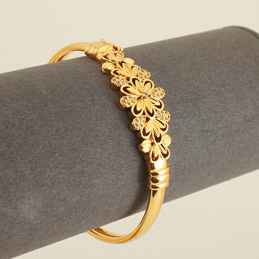 Women's Charm Flower Inlaid Zircon Gold Jewelry Dubai Flower Shining Bracelet Ethiopia Hawaii Jewelry