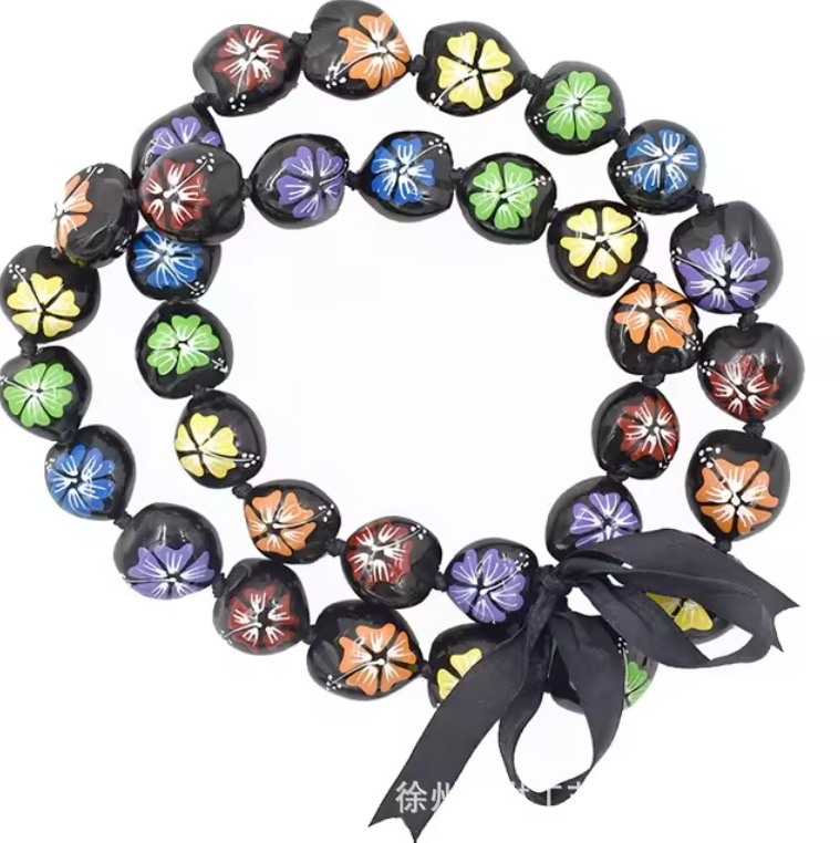 Cross-Border Customized Hawaiian Print Artificial Kukui Necklace 2025 Graduation Season Party Celebration Holiday Gift