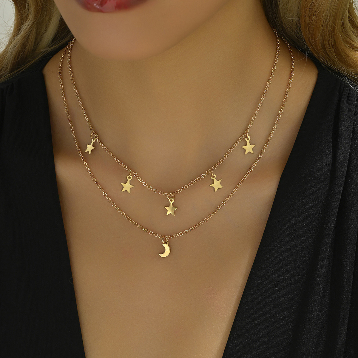 Cross-Border Hot Selling Necklace for Women, Versatile, High-End, Light Luxury Style, Star and Moon Multi-Layered Chain Design