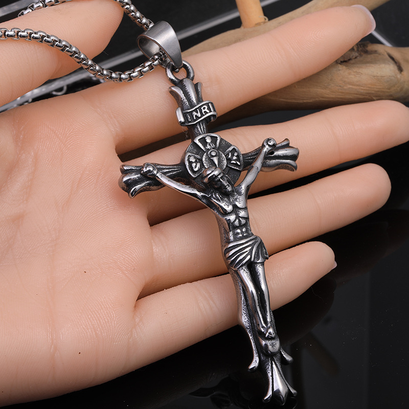 Little Red Riding Book Explosions Ancient Method Hollow Cross Diamond Pestle Necklace 2024 New Heavy Industry Diamond Flash Woolen Chain