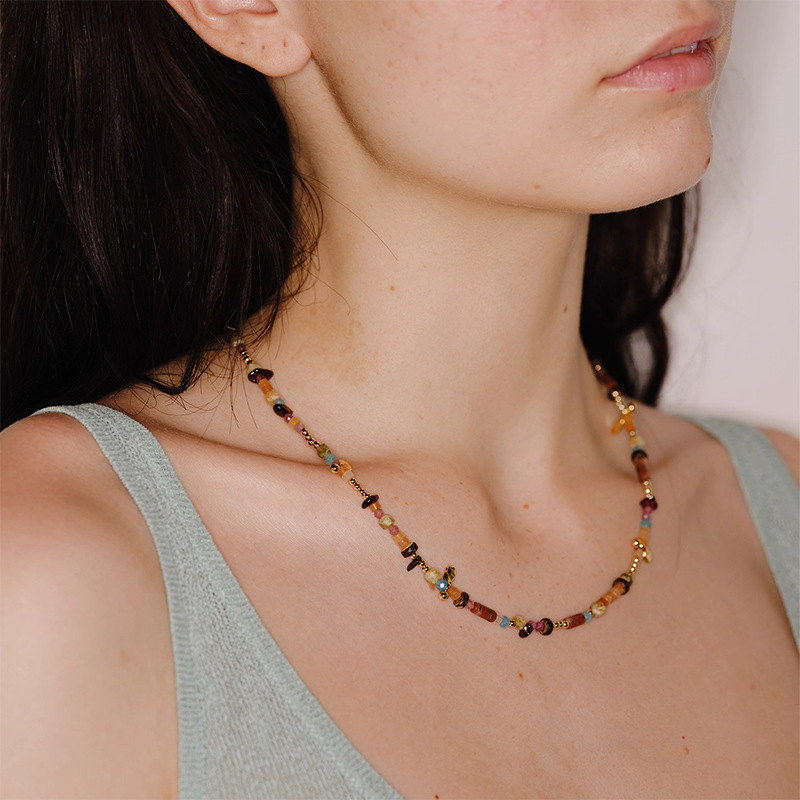 New Model First Release! Rainbow Gravel Dot Necklace French Fashion Light Luxury Exquisite Trendy Niche Design High-End Feel