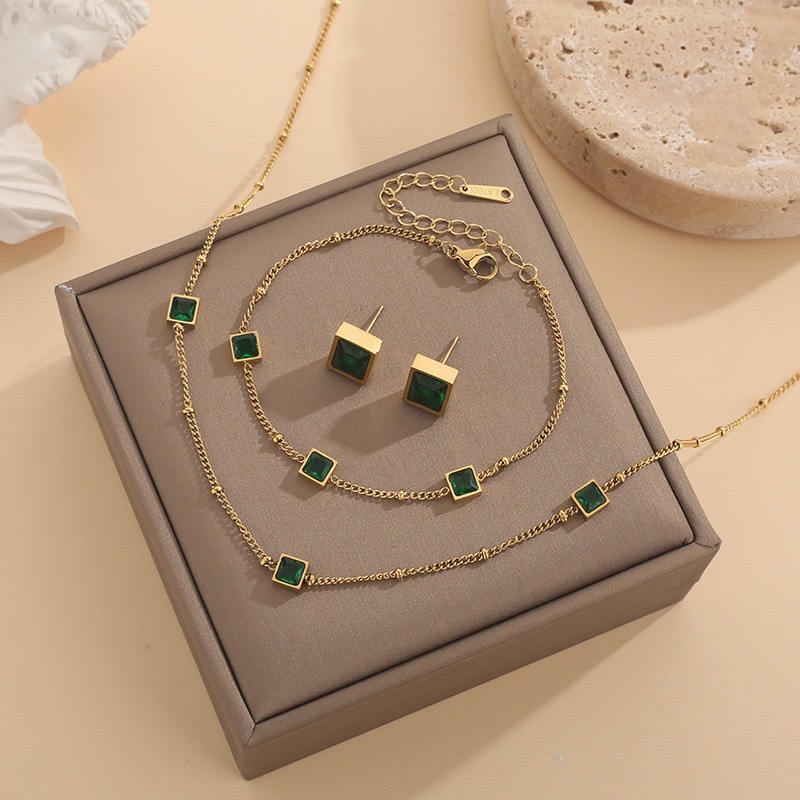 French Square Fine Joker Color Zirconium Green Zirconium Titanium Steel Necklace Women's Fashion Commuting 18K Real Gold Plating