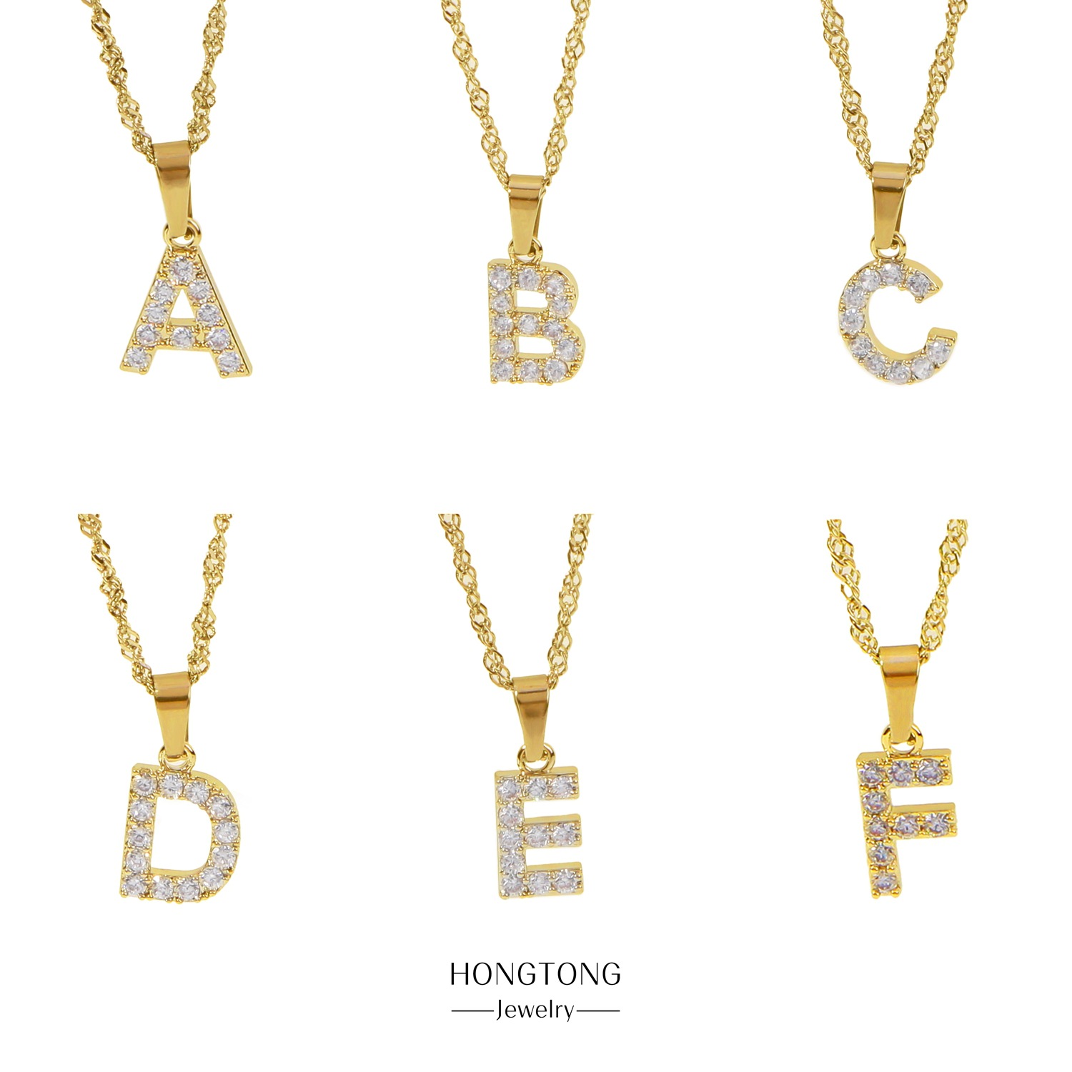 European and American Popular Retro Jewelry English Letters Zircon Water Wave Chain Pendant Stainless Steel Chain Letter Necklace