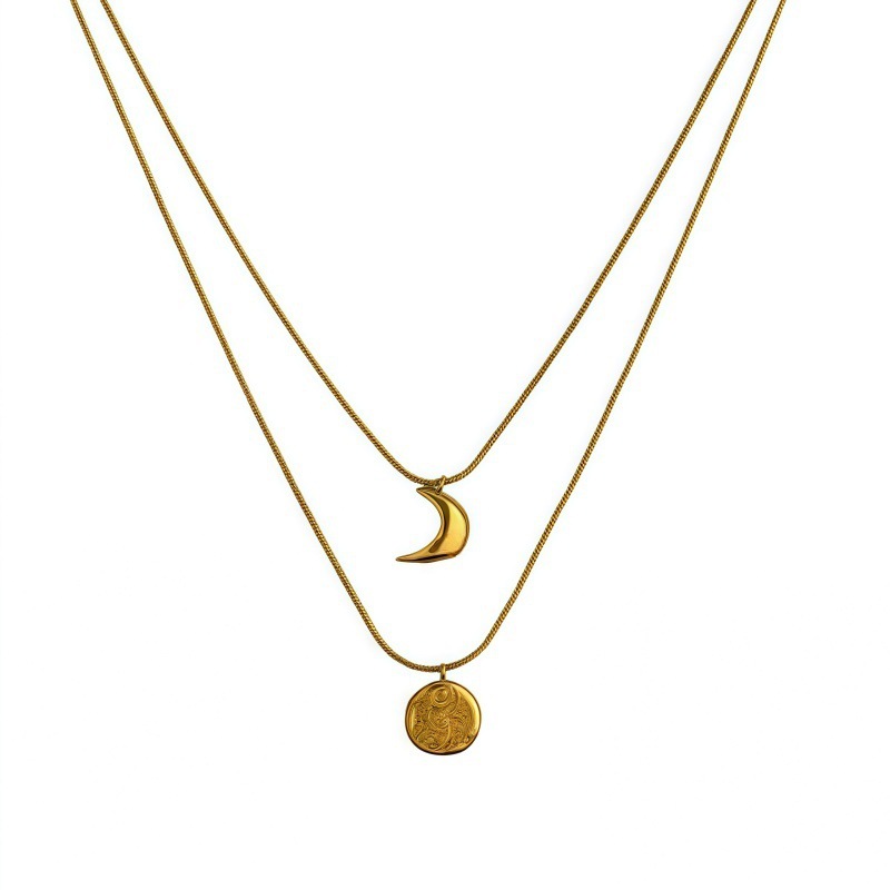 Niche Designer Classic Texture Sun Moon Overlapping Clavicle Chain 2025 New Necklace for Women