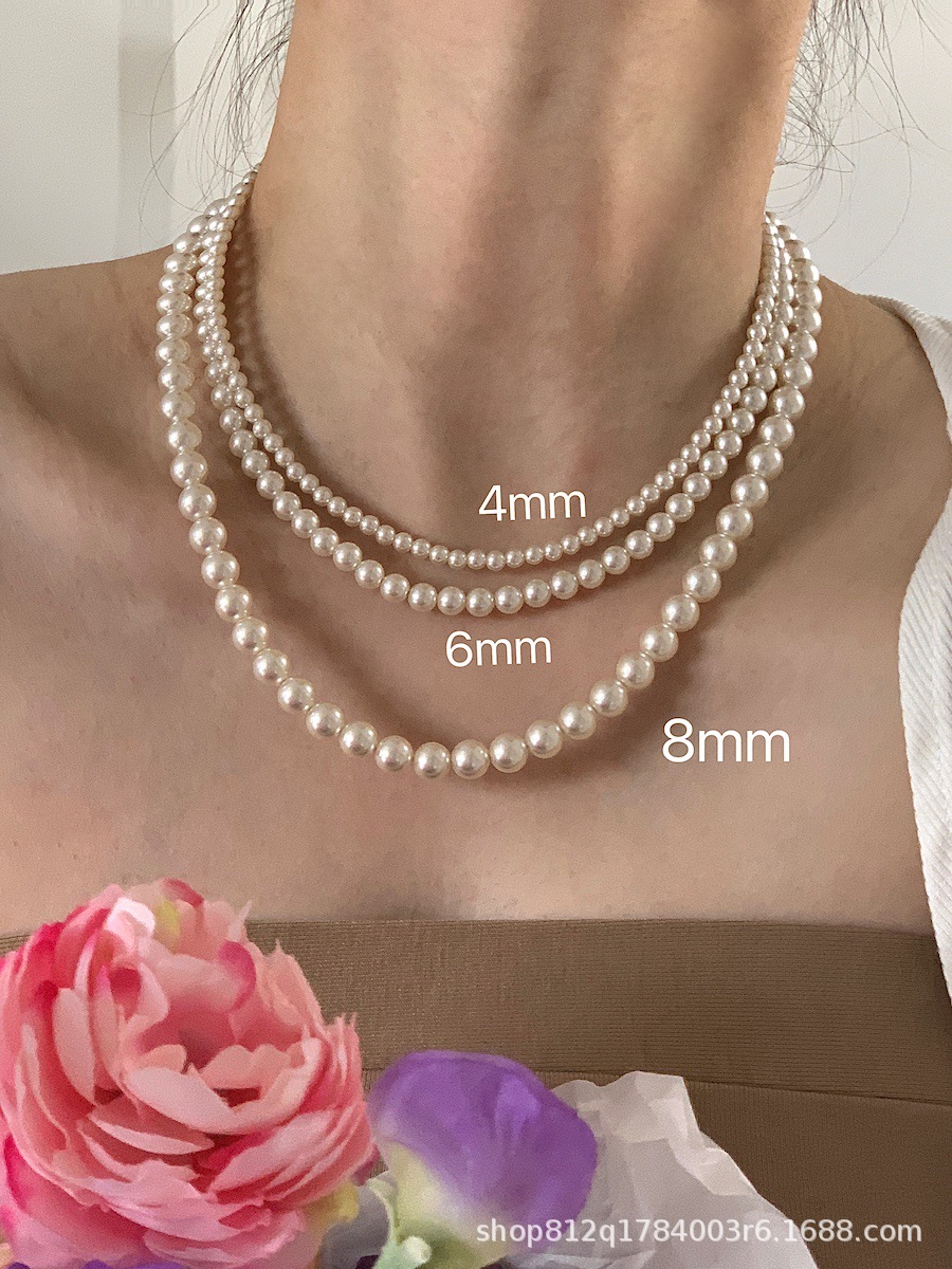 French Style Roundish Imitation Shijia Pearl Strong Light Base Thin Necklace ins Same Style Retro Style Light Luxury Niche Clavicle Chain for Women