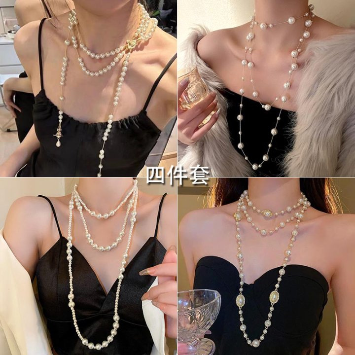 French Multi-Layered Pearl Necklace, Retro, Gentle, Simple, Versatile, Temperament Sweater Chain, Light Luxury and High-End Necklace Wholesale