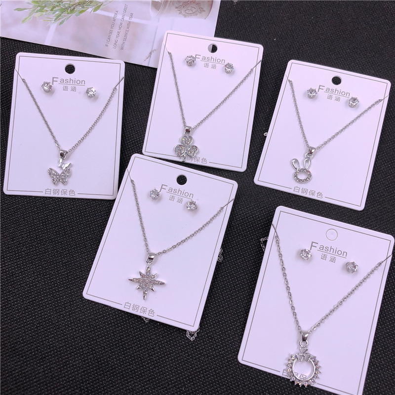 New necklace earrings suit women's diamond-embedded small pendant clavicle chain color-retaining necklace student jewelry small gift
