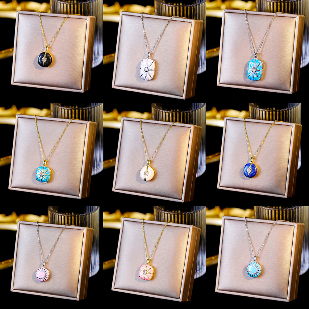 European and American Cross-Border Personalized Round Square Oval Box Necklace Opening and Closing Oil Dripping Spring and Summer Colorful Photo Album Gift
