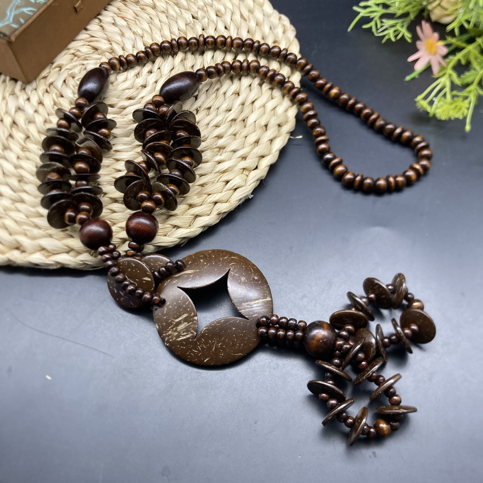necklace Coconut Shell Wooden Bead Long necklace Bohemian Retro Style necklace Cotton and Linen Style Jewelry Cross Border