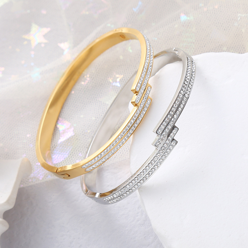 European and American Cross-Border Fashion Line Diamond Buckle Bracelet Full of Stars High-End Stainless Steel Bracelet Wholesale