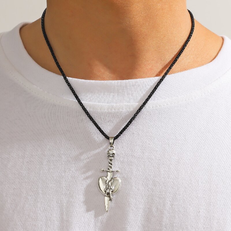 Halloween Dark Retro Gothic Style Ancient Silver Skull Love Sword Fashion Hip Hop Foreign Trade Cross-border Necklace