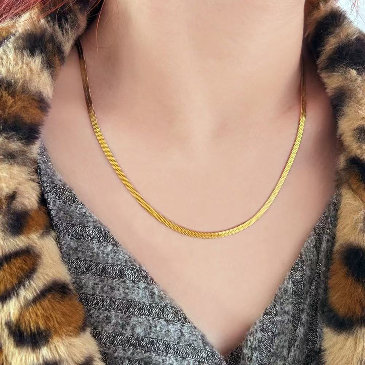 A simple plain blade snake bone flat chain hip hop personality high sense all-match fashion trend necklace