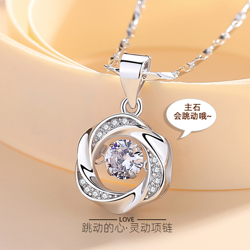 S999 Sterling Silver Beating Heart Necklace Women's Collarbone Chain Korean Style Simple Ins Niche Light Luxury Internet Celebrity Pendant Wholesale