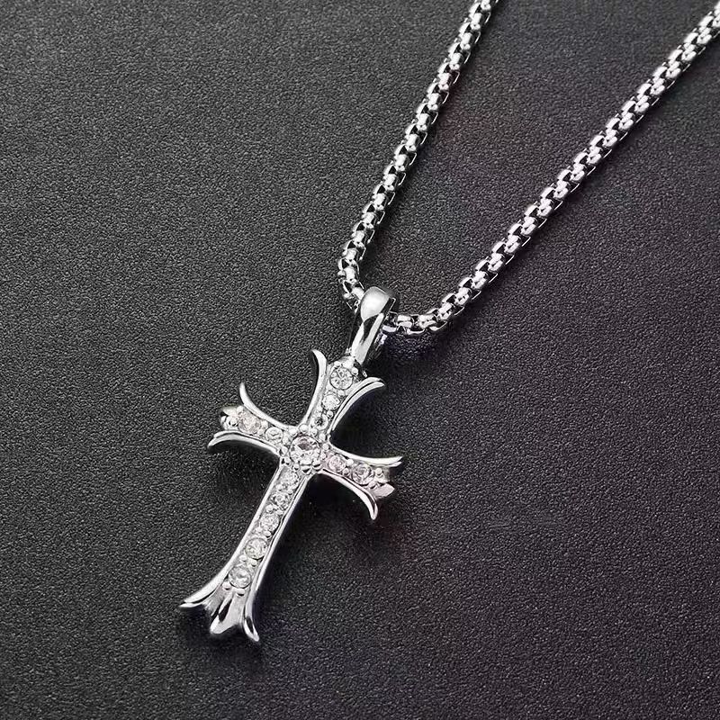 Titanium steel cruciform diamond necklace men's and women's European and American cross-border jewelry hip-hop high-end accessories sweater chain sweater chain
