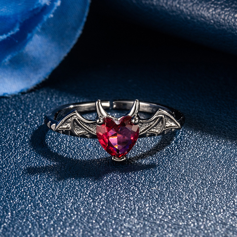 New Devil Ring Personalized Love Shape Ring Female Seiko Inlaid Ruby Retro Elegant Hip-Hop Open Ring