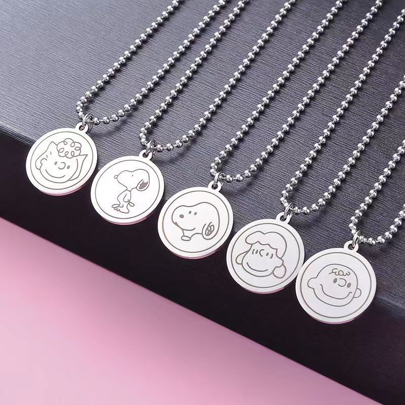 Titanium Steel Non-Fading Bear Snoopy Long Pendant Necklace for Women Trendy Ins Stylish Hip-Hop Couple Sweater Chain for Men