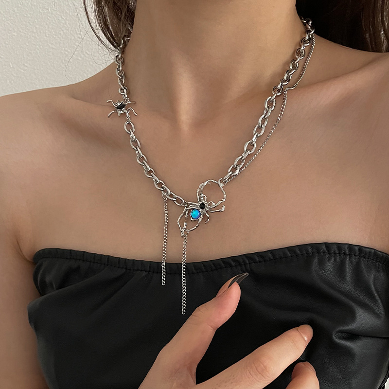 Sweet Cool Personalized Spider Tassel Necklace Women's Light Luxury Niche ins Hip Hop Design Sense Hot Girl Cold Style Collarbone Chain