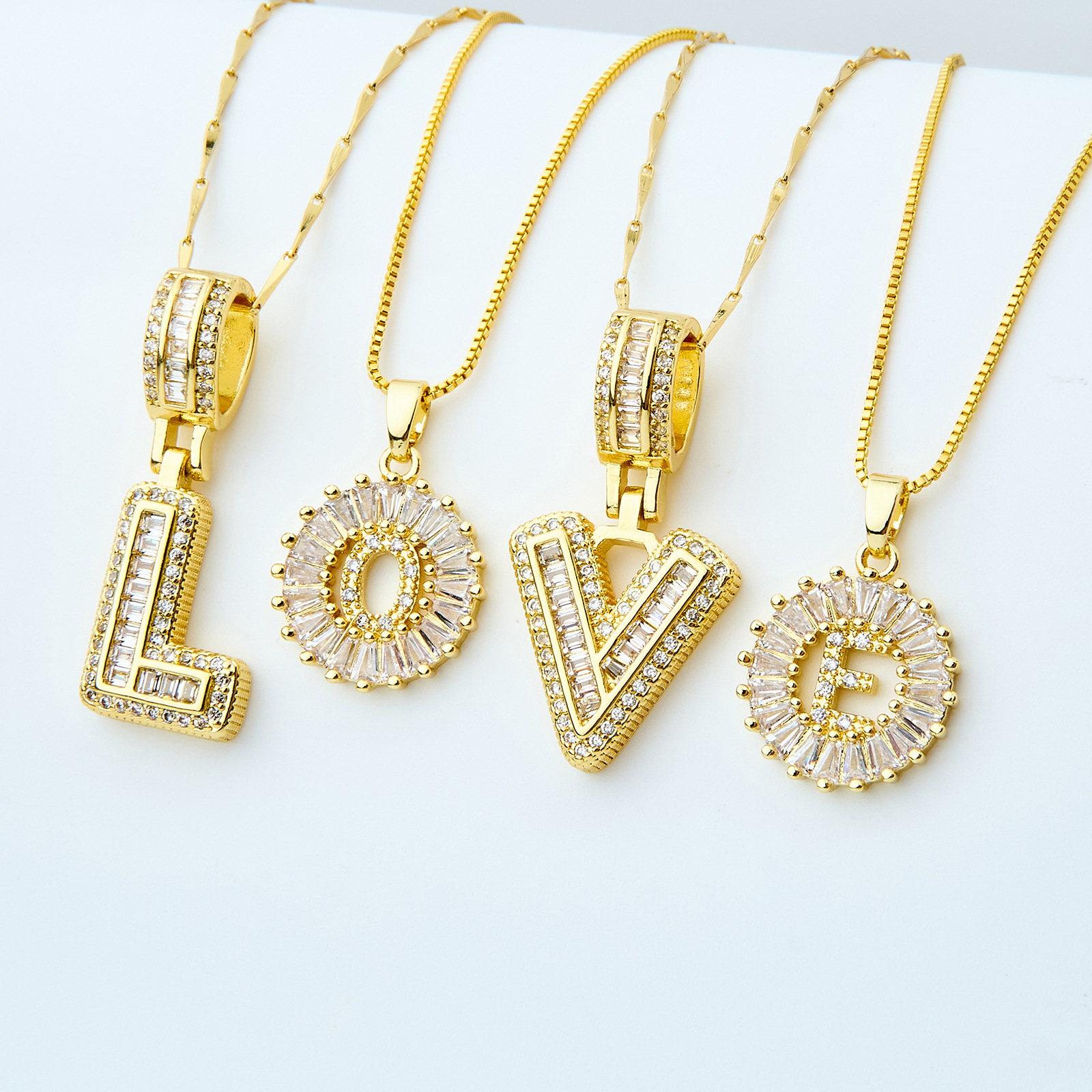 Kindergarten Cross-Border European and American 26-Letter Pendant Necklace Rock Sugar Flower Inlaid with Zircon Full of Diamonds Hip-Hop Style Plated with Real Gold