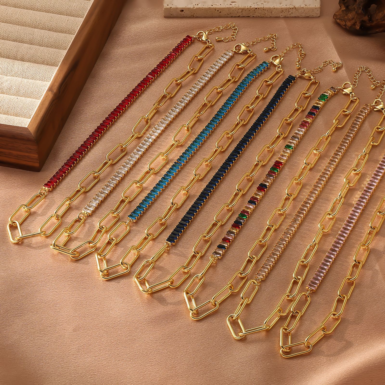 European and American hip-hop zircon chain stitching paper clip necklace women's ins cold style niche light luxury clavicle chain neck chain