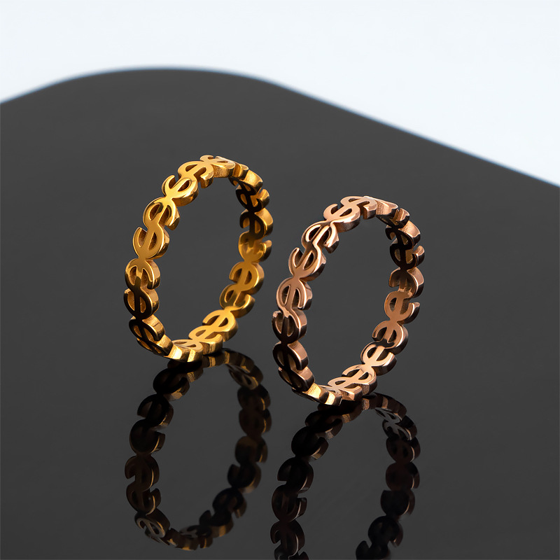 European and American New Hip-Hop Cold Style Hollow High-Level US Dollar Titanium Steel Ring Symbol ins Distinctive Index Finger Ring