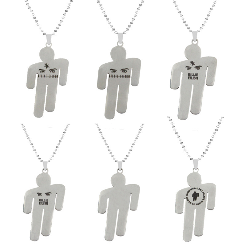 Ins Hip-Hop Fashion Style Billie Eilish Mini Figure Same Style Necklace Unisex Trendy Titanium Steel Keychain