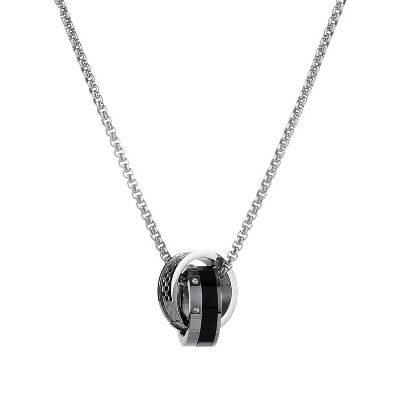 European and American Simple Titanium Steel Pendant Men's and Women's Street Hip-Hop Trendyy Stylish Accessories Versatile Double-Ring Buckle Necklace