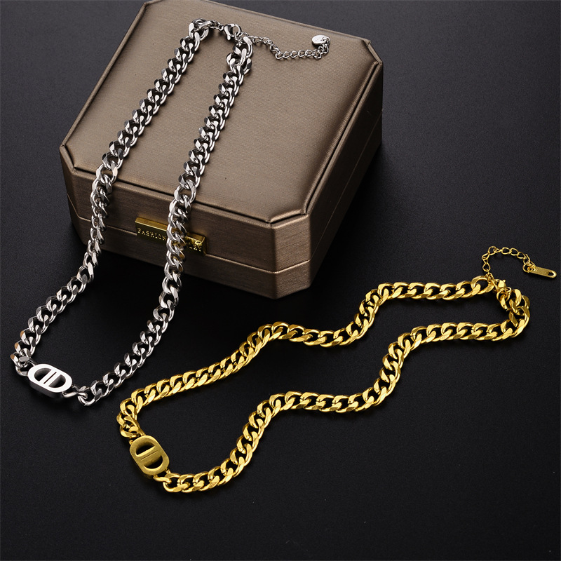 European and American hip hop double D letter necklace personality trend Internet celebrity same style clavicle chain simple ins niche design necklace