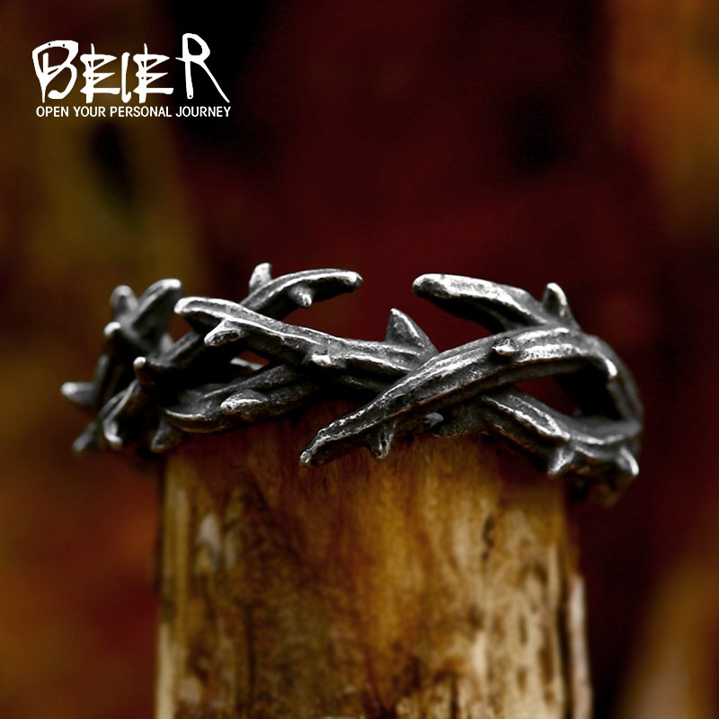 beier stainless steel casting fashion simple branch ring hip hop trend Thorn titanium steel ring jewelry wholesale