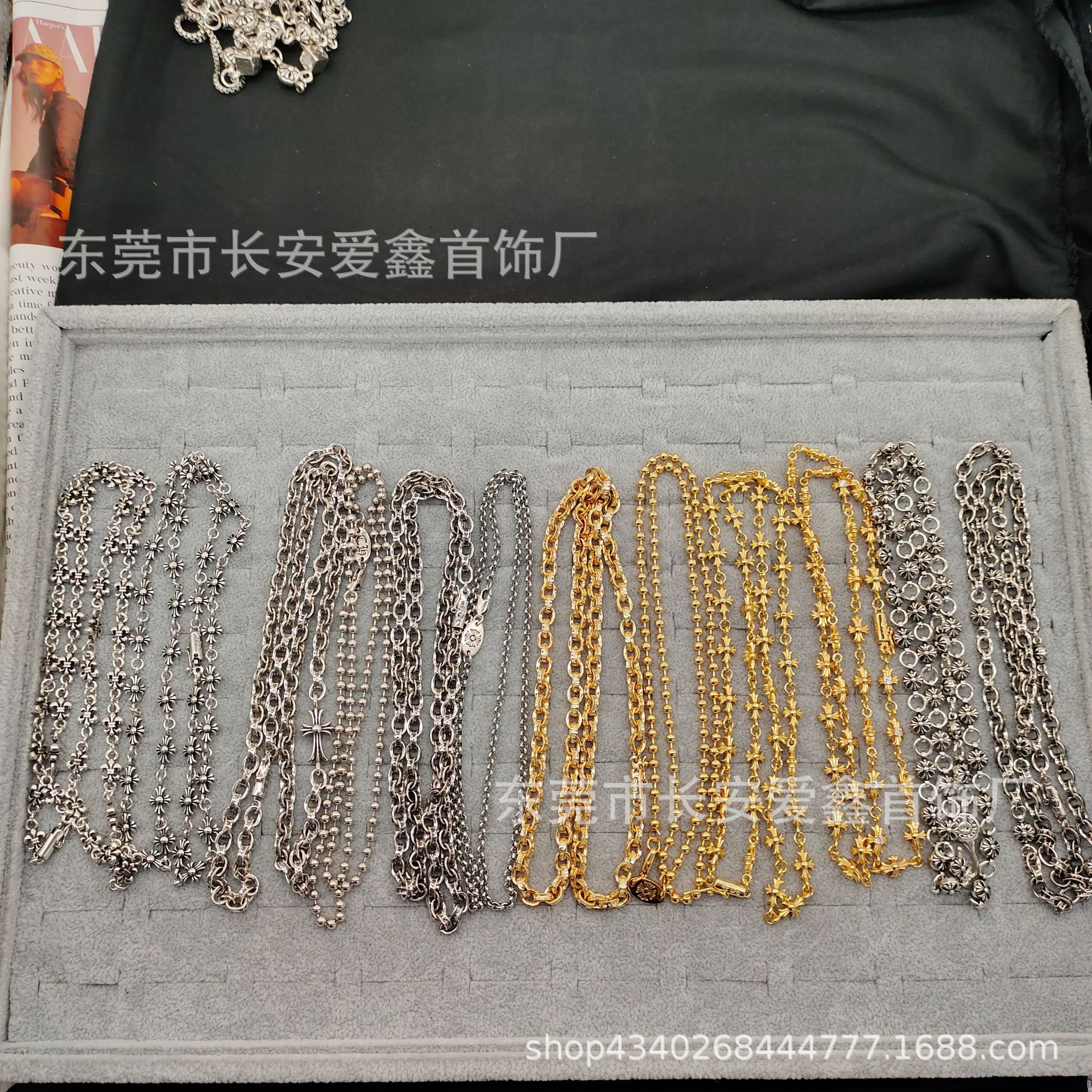 Croix Vintage Anchor Letter Cross Flower Necklace Hip-hop Summer All-match Six-pointed Star sweater chain for men and women