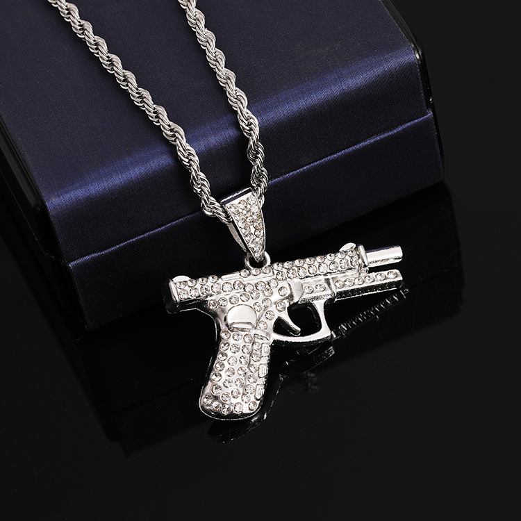 Hot New European and American Necklace Hip Hop Personality Pistol Necklace Creative Diamond-encrusted Zircon Gun Type Men's and Women's Jewelry Gift