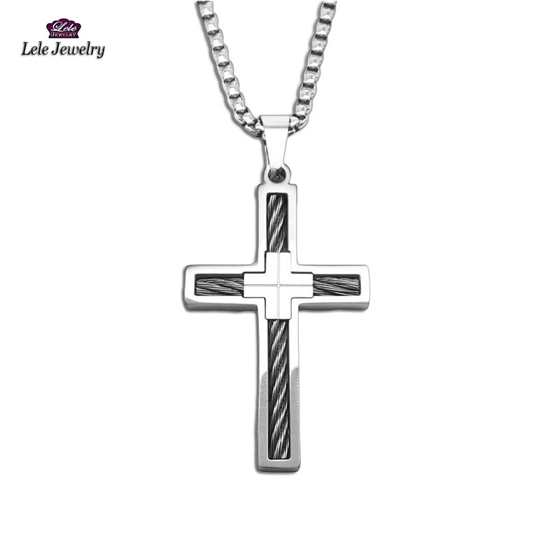 Dongguan Lele Jewelry Factory Cross-Border Trendyy Steel Wire Cross Trendy Men's Necklace Pendant Hip-Hop Versatile Style Now