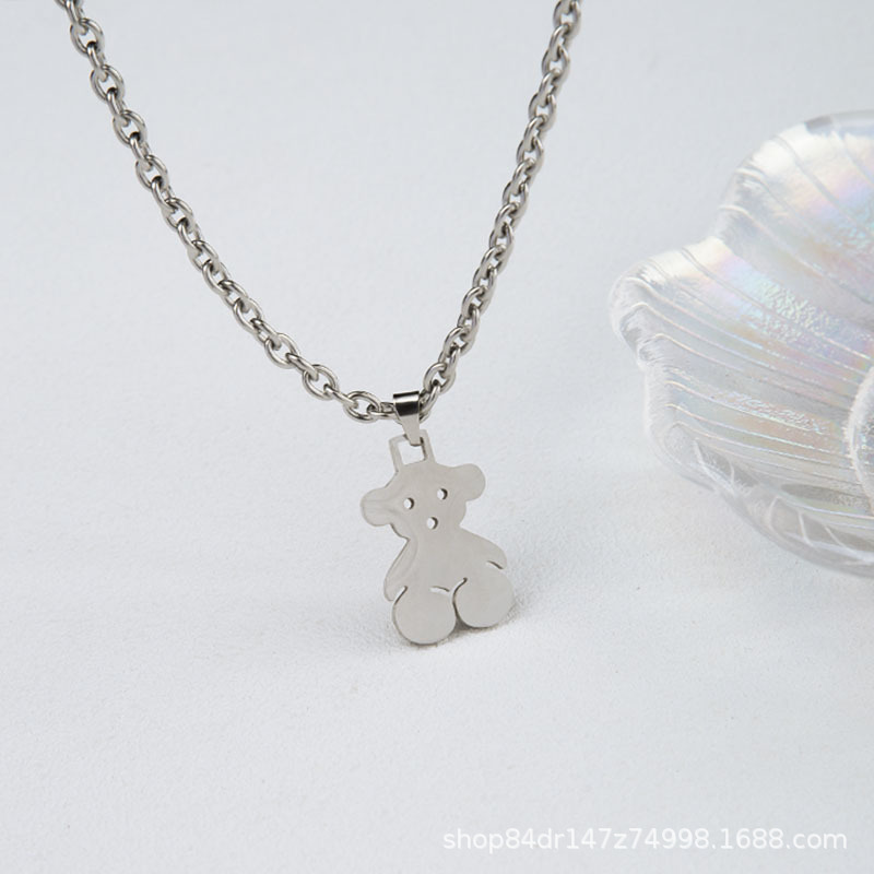 Autumn and Winter Light Luxury Niche Design Sense Bear Woolen Chain Internet Celebrity Hip Hop Neutral Style Stainless Steel Pendant Couple Necklace