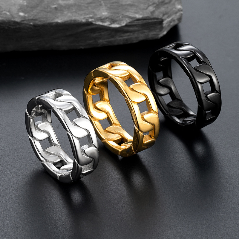 Amazon Wish Fashion Titanium Steel Ring, Trendy Men's Hip-Hop Cuban Chain Ring, Cuban Ring