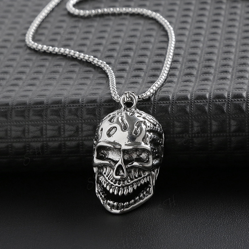 Tiktok online popular retro skull titanium steel necklace men's hip hop personality trendy long sweater chain