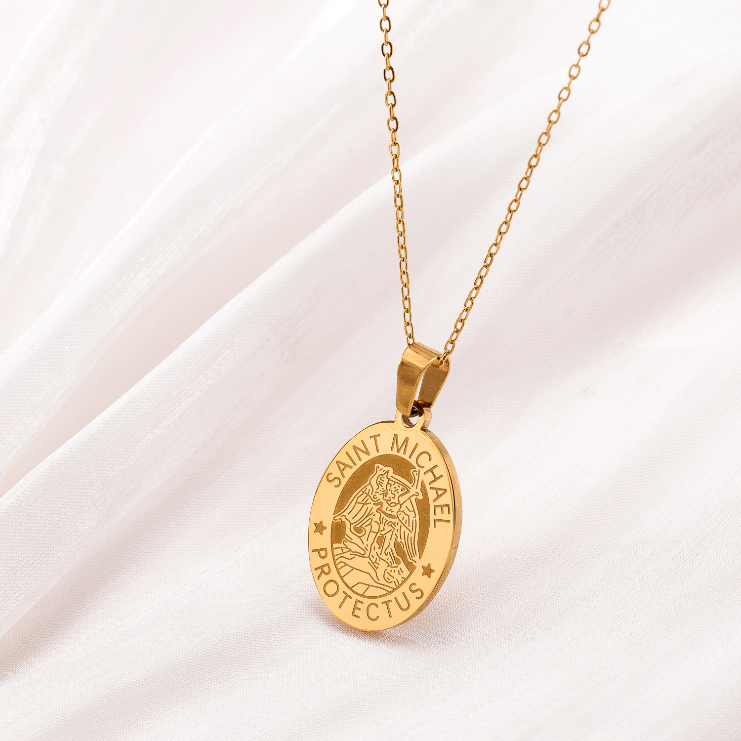 New Saint Michael the Archangel Necklace Men's and Women's Titanium Steel Medal Pendant Hip-Hop Personalized Pendant with Stainless Steel Jewelry